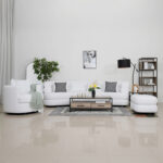 Introducing the Valentino Sofa Set by Royal Furniture a luxurious seating ensemble with a distinctive loose cushion seat design and elegantly crafted wooden legs.