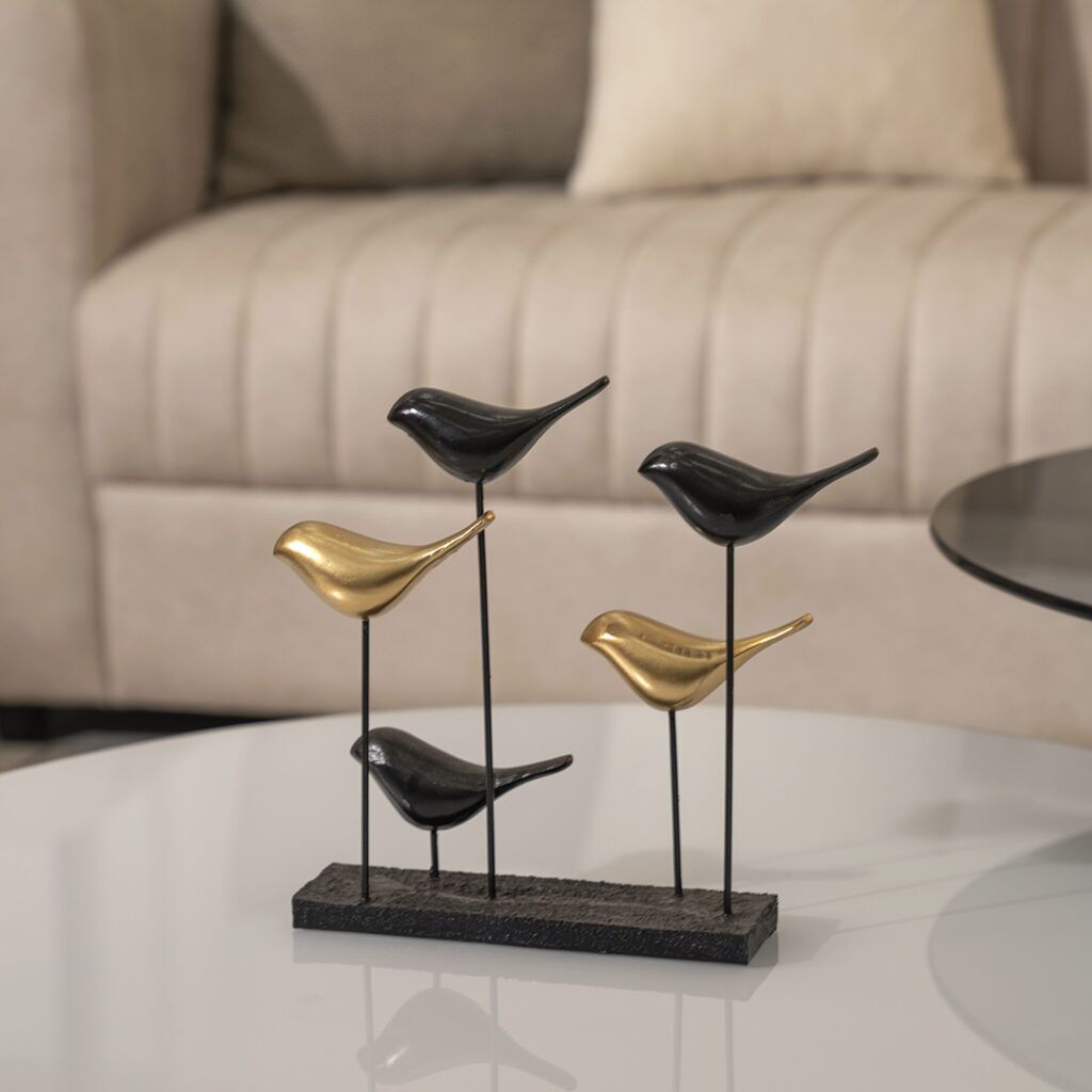 The Verdant Polyresin Black and Gold Birds Family Accent is a beautifully crafted decorative piece that embodies elegance and nature. This accent piece typically features a small family of birds, crafted from polyresin and designed with a blend of black and gold tones for a striking contrast.