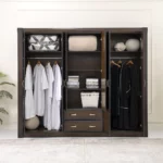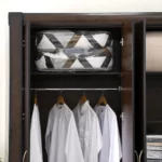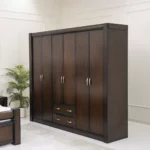 The Victoria is a 6-door wardrobe finished in a Chocolate color — shade that blends easily with modern or contemporary bedroom décor. It offers a practical solution for organizing clothing while saving space.