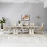 Vrindha 1+10 dining room set designed to impress—spacious, refined, and perfect for hosting memorable gatherings in style. Crafted with premium materials to blend timeless design with lasting comfort.