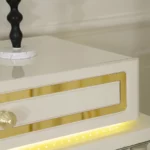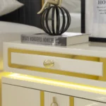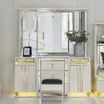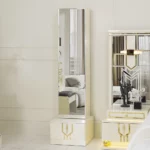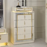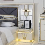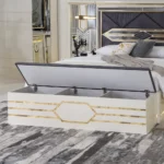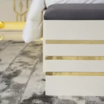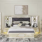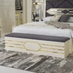 The zaina set brings elegance and warmth to your bedroom with its refined beige and gold tones. Featuring a 200×180 cm bed, chest of drawers, bench, and long mirror, it combines style and practicality for a complete and sophisticated look.