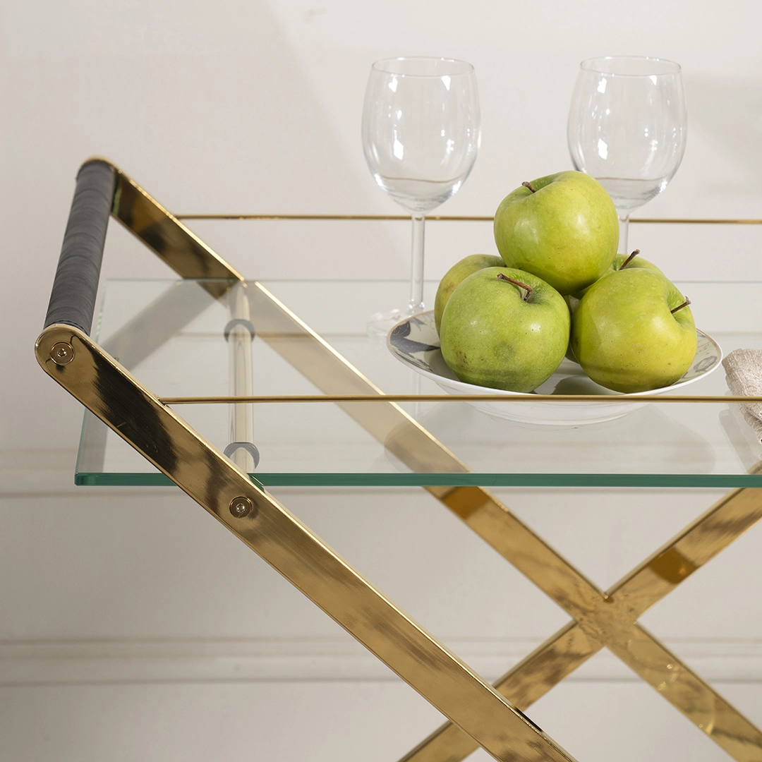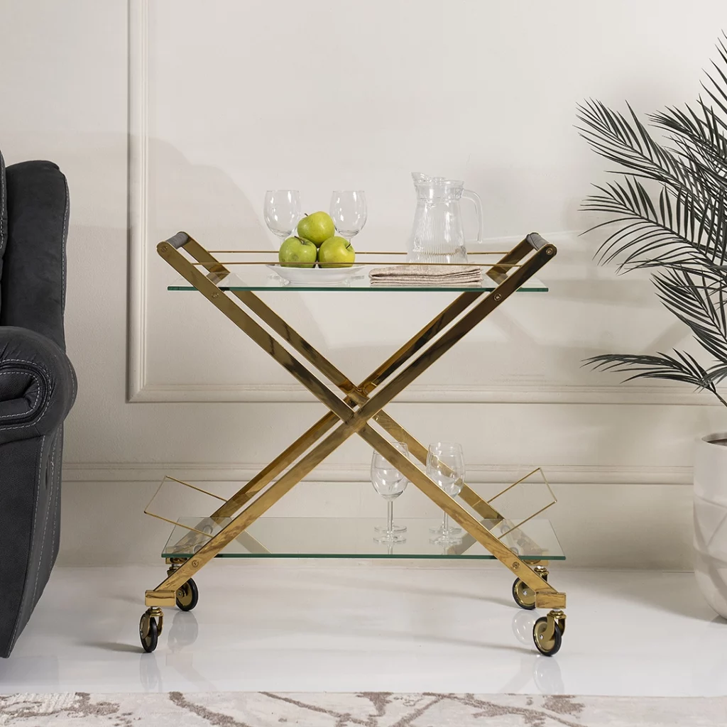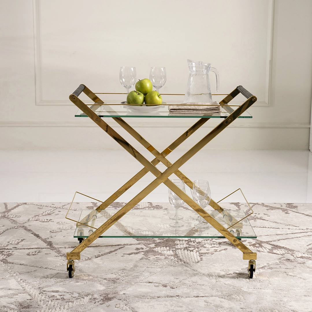 Bring elegance and practicality to your home, hotel or hospitality space with the ZEFRO Service Trolley in a luxurious gold finish. This premium trolley is designed to provide effortless mobility and stylish presentation for beverages, snacks, or décor items — perfect for entertaining guests or everyday use.
