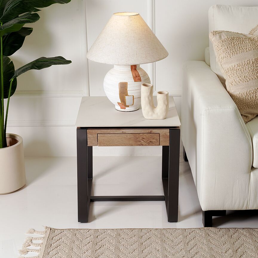 Finished in an elegant black and white color combination, the table adds a bold yet sophisticated touch to any modern interior. Featuring a built-in drawer, it provides convenient storage for your essentials, keeping your space tidy and organized.