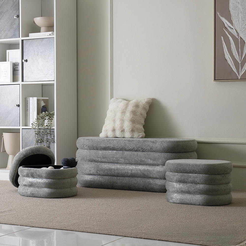 The zuela ottoman 3 Piece set with storage in Grey combines functionality and style, offering versatile seating with storage to keep your space organized and clutter-free.