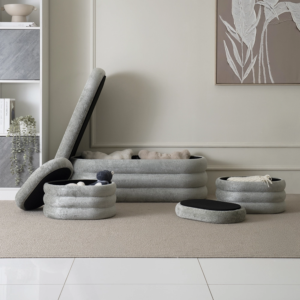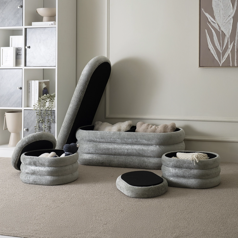 The zuela ottoman 3 Piece set with storage in Grey combines functionality and style, offering versatile seating with storage to keep your space organized and clutter-free.