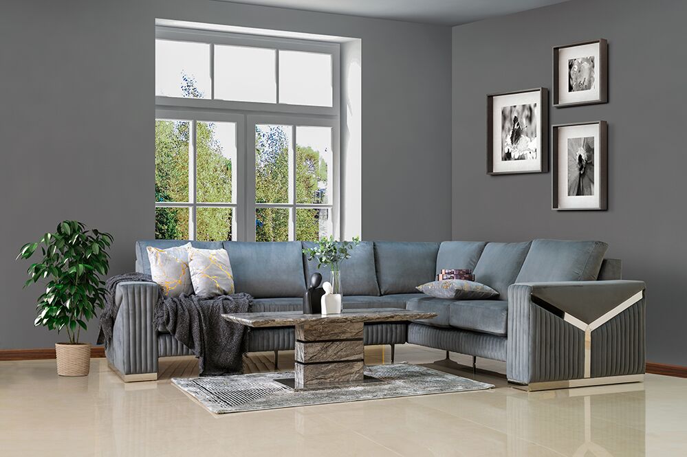 Enhance your home decor with the Zurich Corner Sofa, where the premium fabric and silver-plated leg design create a statement of opulence and modern allure.